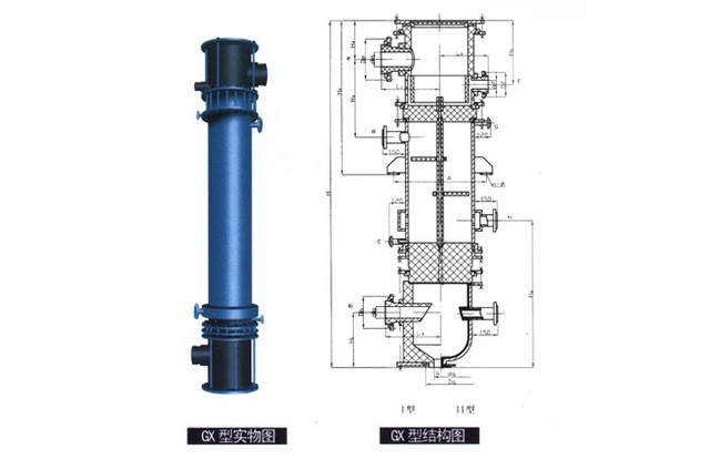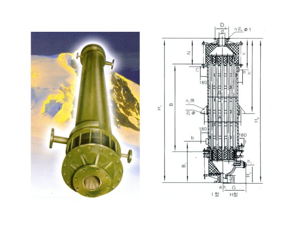 GX型系列列管式石墨降膜吸收器之吸收換熱元件為不透性石墨管,成膜條件極佳,故吸收效率高(與尾氣搭配合吸收率可達99%)生產強度大 CQ22/932X3000單管日產量可達0.8-1.2t33%鹽酸/天),且調節范圍大,產品不受污染,純度好,主要用于吸收Hcl氣制鹽酸。也可處理含Hcl、S02、NH2, HF、P2O5,H2S等氣體之尾氣,既回收某些成分 ,制取副產品減少或消除環境污染。本設 備之氣